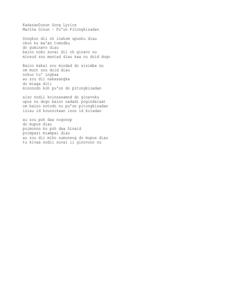 Kadazan Dusun Lyrics Martha Ginun Pu Un Pitongkizadan Pdf